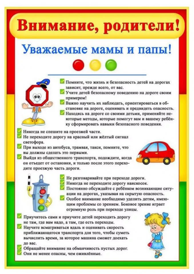 Позвольте ещё раз напомнить вам о необходимости соблюдения правил дорожного движения. Основные правила, которые должен знать ребенок: